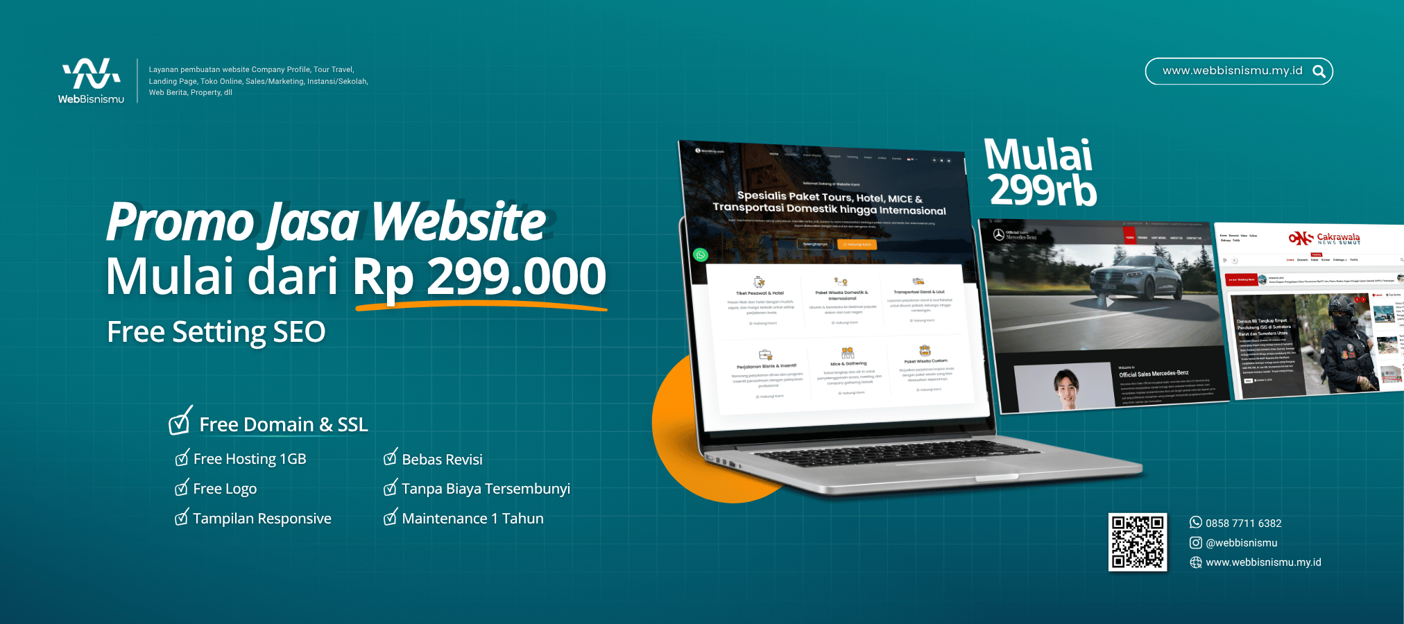 WebBisnismu adalah penyedia jasa pembuatan website profesional dan terpercaya di Klaten yang telah membantu ratusan pelaku usaha dari berbagai sektor, mulai dari UMKM, toko online, hingga perusahaan besar. Di era digital saat ini, memiliki website bukan lagi pilihan, melainkan kebutuhan penting untuk memperkuat identitas bisnis Anda. Oleh karena itu, kami hadir sebagai solusi untuk Anda yang membutuhkan website modern, responsif, cepat, dan SEO-friendly dengan harga yang tetap ramah di kantong. Berbeda dengan jasa bikin website lainnya, WebBisnismu tidak hanya fokus pada tampilan visual, tetapi juga mengedepankan fungsionalitas, kemudahan akses, serta strategi digital yang sesuai dengan target market bisnis Anda. Setiap website yang kami buat selalu disesuaikan dengan kebutuhan klien, mulai dari personal branding, bisnis kuliner, fashion, jasa, komunitas, hingga organisasi formal. Dengan harga pembuatan website murah mulai 200 ribuan, Anda sudah bisa memiliki website profesional lengkap dengan domain, hosting, desain elegan, serta dukungan teknis dari tim kami. Proses pengerjaan cepat dan fleksibel, bahkan dalam hitungan hari Anda sudah bisa memiliki website yang siap digunakan. Tak hanya itu, tim WebBisnismu juga siap memberikan panduan, saran, dan support agar website Anda tidak hanya sekadar ada, tapi juga benar-benar mendukung perkembangan bisnis.